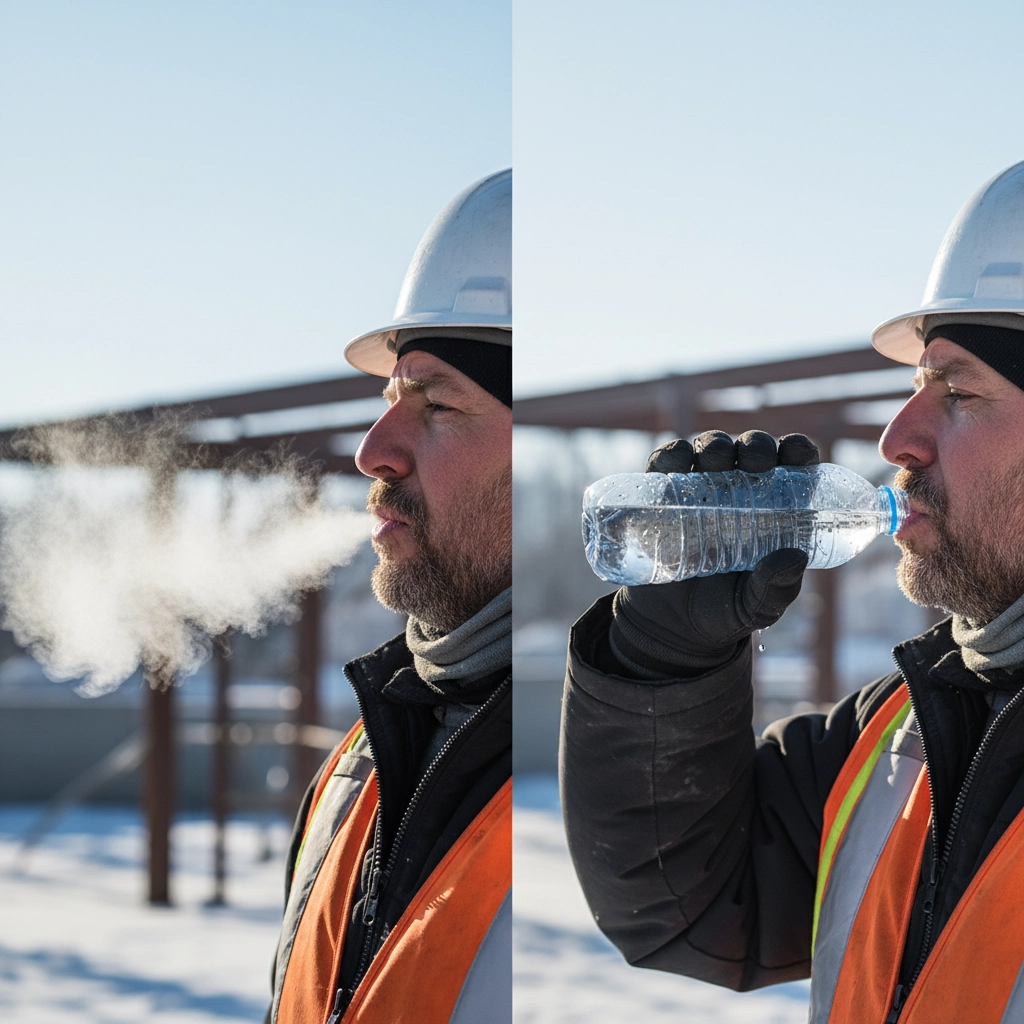 A construction worker can lose up to a liter of water per day just through breathing in cold, dry conditions. That's more than two standard water bottles, gone before you even factor in sweating or other fluid losses.